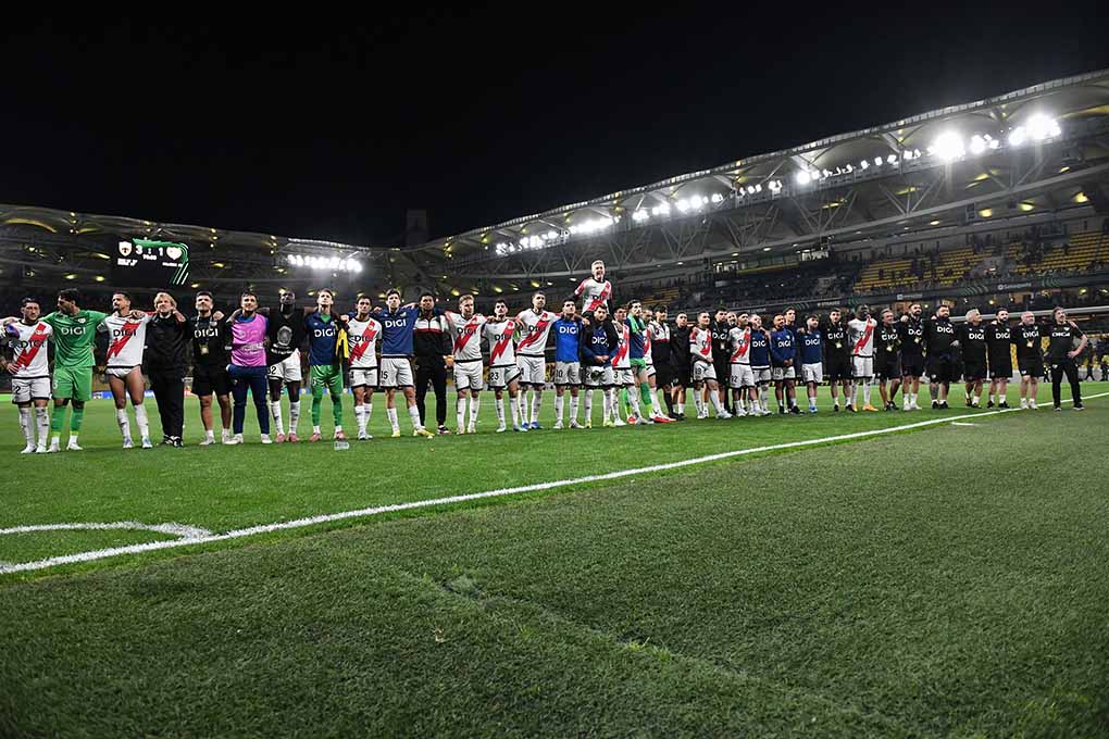 El encuentro no fue en absoluto fácil. A pesar de una buena salida, los de Íñigo Pérez fueron a remolque, sin balón y defendiéndose como pudieron, ante las acometidas de un conjunto local que enjugó la renta adversa de tres goles en apenas 51 minutos. Tampoco favorecieron las lesiones de Álvaro García y Luiz Felipe. Fue entonces cuando los de franja dieron un paso adelante. Pedro Díaz, que había salido en la segunda parte, asistió a Isi, que se coló dentro del área y de potente zurdazo anotó en el minuto 60 el tanto a la postre que valdría la clasificación. El panorama cambió radicalmente. El Rayo mostró su mejor versión e incluso pudo acortar distancias, pero el remate de De Frutos acabó en el poste izquierdo de la meta griega. Lo ajustado de la eliminatoria propició que la emoción se mantuviera hasta el final, pero el marcador ya no se movería ante el delirio de los jugadores y de los aficionados franjirrojos que se desplazaron al OPAP Arena a insuflar ánimos a su equipo.