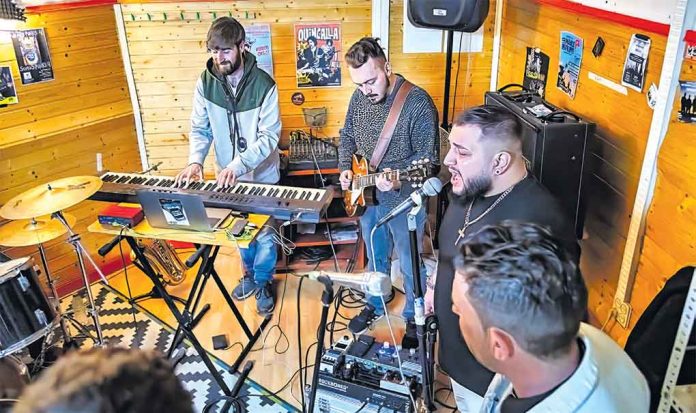 Para Efraín, “la música es sentir y matemática. Sentir, para transmitir, y matemática, para que todo encaje y un equilibrio entre emoción y estructura”. Más allá de los géneros que fusionan, el alma del grupo está en esa conexión entre la pasión y la precisión, entre la improvisación y el trabajo detrás de cada canción. Sin embargo, su proceso creativo no sigue reglas fijas. “No tenemos un proceso claro. Cada uno aporta lo que puede, cuando puede. Es un proceso coral”, explica Manuel. Con siete integrantes y vidas cruzadas por el barrio, el trabajo en equipo es caótico, pero auténtico, y de ahí nace su sonido único.