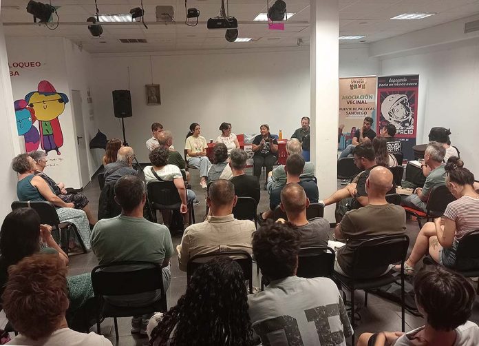 Tras este comienzo, se desarrolló un debate entre diferentes figuras y nuestra entidad, la Asociación Ciudad Joven. Tuvimos la oportunidad de salir uno de nosotros y sentarnos junto a estas figuras. Imagino que un representante facilita la comunicación entre dos grupos. Realmente todos nos pusimos nerviosos, incluida yo, que decidí dar el paso y ofrecerme para hablar con el resto de invitados. Y con razón, es raro debatir estando rodeado de adultos, por el hecho de que la diferencia de edad no es muy llevadera, que digamos… Sientes temor a equivocarte, a que lo que digas sea considerado menos por tu edad o por “no conocer a fondo el tema” o por lo menos yo lo viví así. El debate transcurrió como cualquier otro. La temática era curiosa, el pasado y futuro de Vallecas. Siempre me ha encantado conocer sus orígenes, qué ha pasado para que las cosas sean como son. Nuestro barrio es un barrio único, con su propia identidad y personalidad que hace lo que Vallecas es.