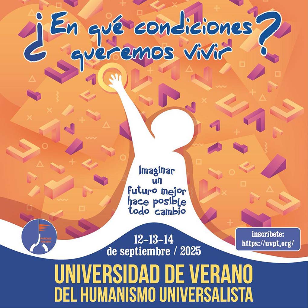 La III Universidad de Verano del Humanismo Universalista tendrá lugar en Parque Toledo (parque-toledo.org), entre los días 12 y 14 de septiembre y este año el lema trasversal, alrededor del cual se trabajará desde muy diferentes campos, será «En qué condiciones queremos vivir. Imaginar un futuro mejor hace posible todo cambio». Como en anteriores ediciones, habrá conferencias, paneles, talleres, cine, debate y actividades lúdicas, entre otras propuestas.